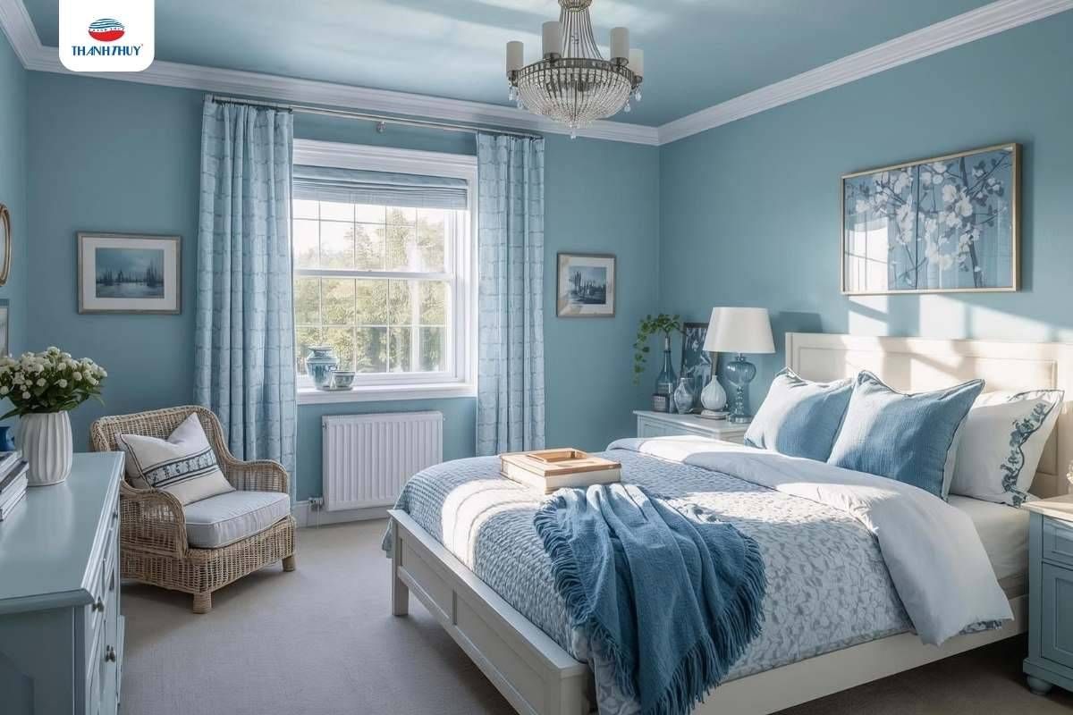Một ít sắc xanh pastel hoặc xanh ngọc nhẹ nhàng cũng có thể là lựa chọn phong thủy phù hợp cho những cặp đôi hướng tới sự bình yên. Dù không phổ biến bằng gam ấm, nhưng màu mát mang lại cảm giác nhẹ nhõm và giúp cân bằng cảm xúc sau những ngày cưới bận rộn. Khi được sử dụng ở mức độ vừa phải, chăn ga màu mát sẽ tạo nên sự hài hòa mà vẫn giữ trọn vẹn vẻ tinh khôi của phòng tân hôn.