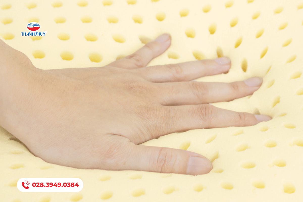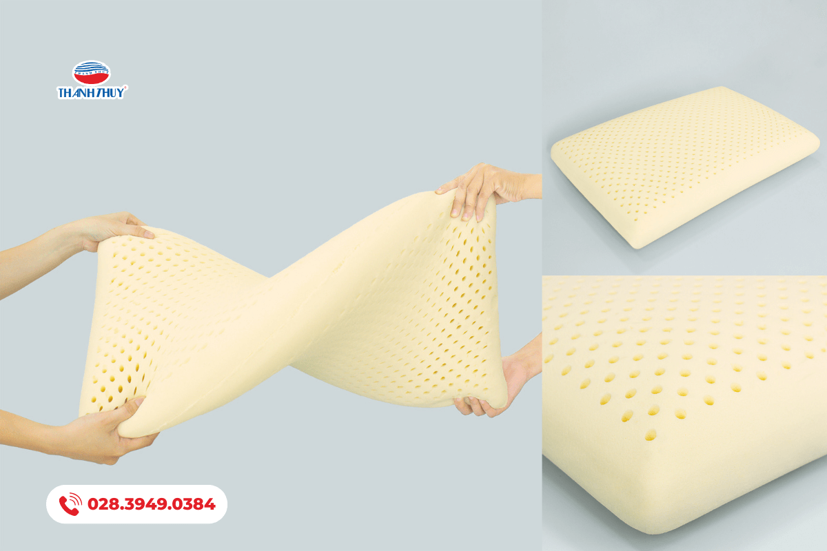Sự khác biệt của gối cao su Chăn Ra Thanh Thủy nằm ở cam kết sử dụng cao su thiên nhiên tinh khiết. Sản phẩm được sản xuất bằng công nghệ ép khuôn tiên tiến, tạo ra hàng ngàn lỗ thông hơi, giúp gối luôn thoáng mát, không gây hầm nóng.