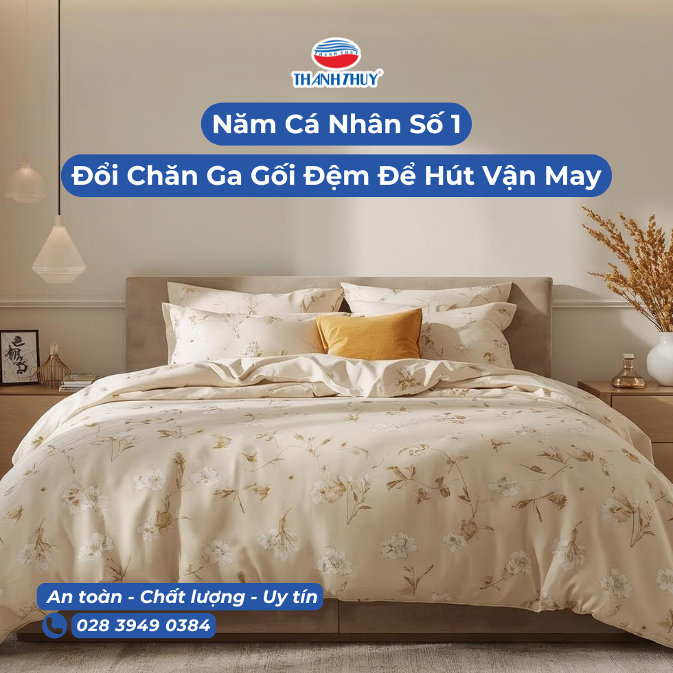 Hy vọng những gợi ý trên từ Chăn Ga Thanh Thủy sẽ giúp bạn dễ dàng chọn được bộ chăn ga gối đệm ưng ý, phù hợp với phong thủy và năng lượng của "Năm Cá Nhân Số 1". Một giấc ngủ ngon trên bộ chăn ga mới không chỉ nâng cao sức khỏe mà còn là lời chúc tốt đẹp nhất cho một năm mới an lành, thịnh vượng và tràn đầy thành công. Hãy bắt đầu ngay hôm nay.