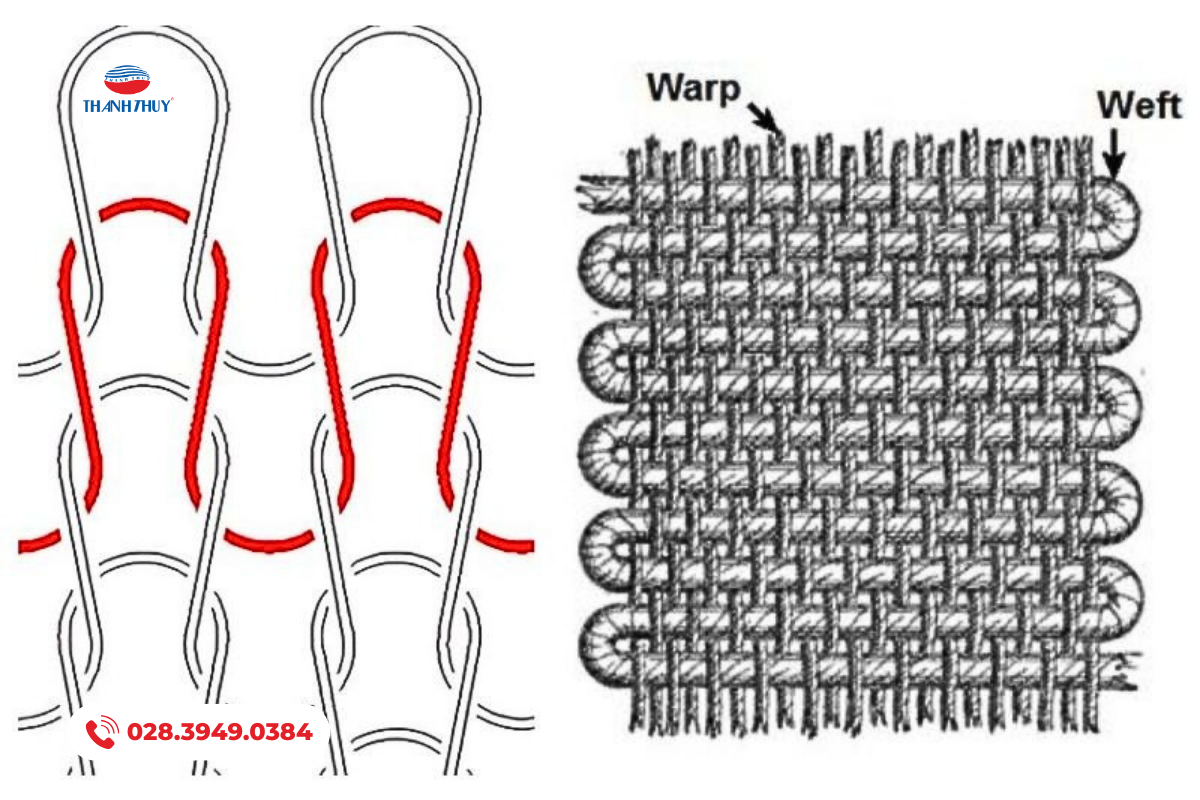 Đây là phương pháp dệt truyền thống, trong đó các sợi ngang được đan xen vuông góc với các sợi dọc. Kỹ thuật này tạo ra các loại vải bền chắc, không co giãn, thường được dùng để sản xuất quần áo, chăn ga, và khăn trải bàn.