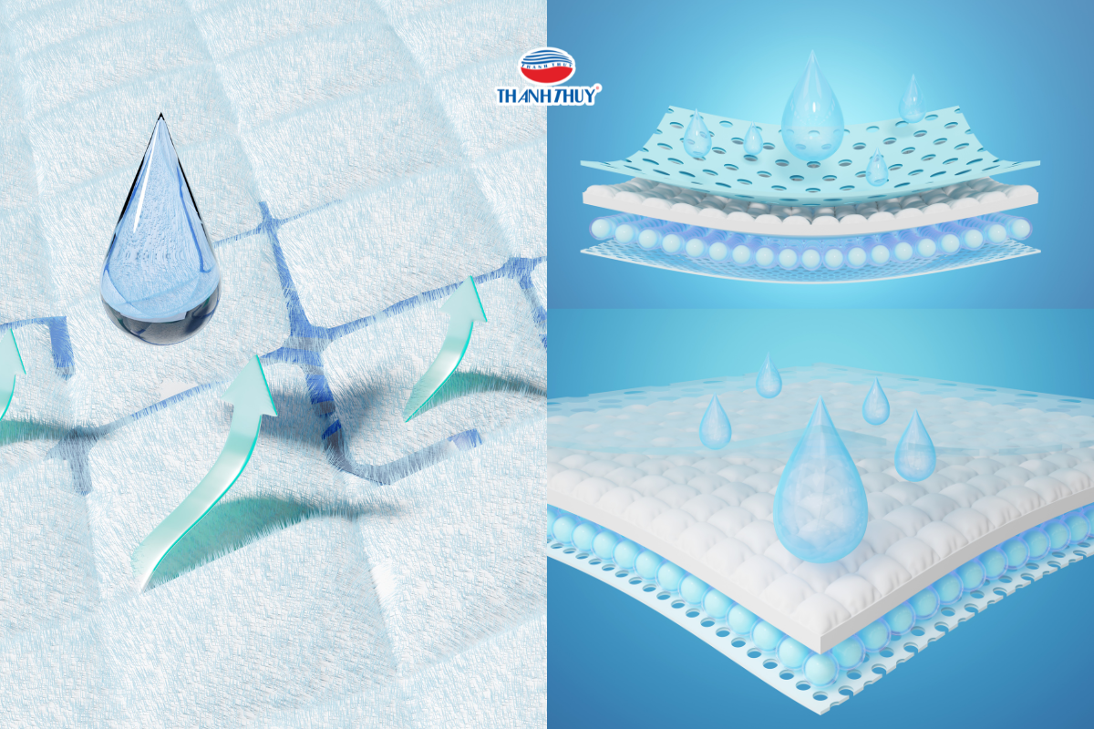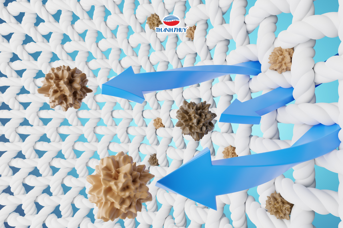 Đồng thời, những sợi này sở hữu khả năng hút ẩm mao dẫn (capillary action) mạnh mẽ, giúp nhanh chóng hấp thụ hơi ẩm và mồ hôi từ cơ thể rồi phân tán ra môi trường xung quanh, từ đó giữ cho bề mặt tiếp xúc luôn khô ráo và thoáng mát.